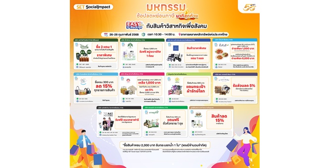 star_borderModal Upgrade Package“ตลาดหลักทรัพย์ฯ ชวนคนไทยร่วมมหกรรมช้อปลดหย่อนภาษีนาทีสุดท้าย Easy E-Receipt 2.0 กับสินค้าจาก 11 วิสาหกิจเพื่อสังคม 26-28 ก.พ.”24 Feb 2025 16:28