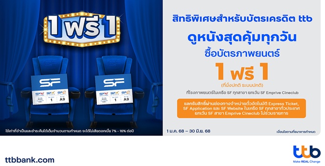 star_borderModal Upgrade Packageบัตรเครดิต ttb ชวนดูหนังสุดคุ้มที่ SF Cinema รับสิทธิ์ซื้อบัตรภาพยนตร์ 1 ที่นั่ง ฟรี 1 ที่นั่ง19 ก.พ. 2568 14:20 น.