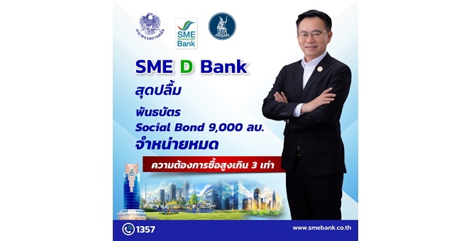 star_borderModal Upgrade PackageSME D Bank สุดปลื้ม Social Bond 9,000 ลบ. จำหน่ายหมด ความต้องการซื้อสูงเกิน 3 เท่า นักลงทุนเชื่อมั่นพร้อมสนับสนุนเอสเอ็มอีเข้าถึงสินเชื่อดอกเบี้ยต่ำ ยกระดับธุรกิจสร้างสังคมที่เป็นสุข19 ก.พ. 2568 14:25 น.