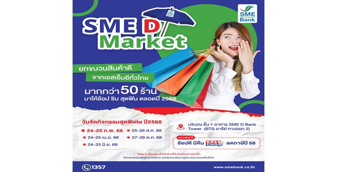 star_borderModal Upgrade PackageSME D Bank เคียงข้างดูแลผู้ประกอบการ หนุนเพิ่มรายได้ขยายตลาด จัดโครงการ “SME D Market” เปิดพื้นที่ขายสินค้าฟรี ประเดิม 24-25 ก.พ.นี้19 ก.พ. 2568 14:37 น.