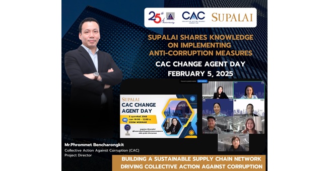 star_borderModal Upgrade Package`ศุภาลัย` ร่วมบรรยายในงาน “CAC Change Agent Day” สนับสนุนธุรกิจโปร่งใส เสริมสร้างความแข็งแกร่งด้านการต่อต้านการทุจริตคอร์รัปชัน14 ก.พ. 2568 14:18 น.