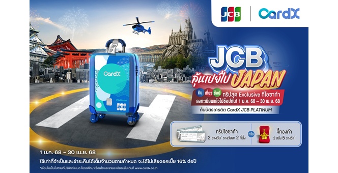 star_borderModal Upgrade PackageCardX ร่วมกับ JCB จัดแคมเปญใหญ่ “JCB ลุ้นเปย์ไปเจแปน” ชวนช้อปผ่านบัตรเครดิต CardX JCB PLATINUM ลุ้นบินลัดฟ้ากับทริปสุดเอ็กคลูซีฟที่โอซาก้า ช้อปตั้งแต่วันนี้ – 30 เมษายน 256830 ม.ค. 2568 14:39 น.