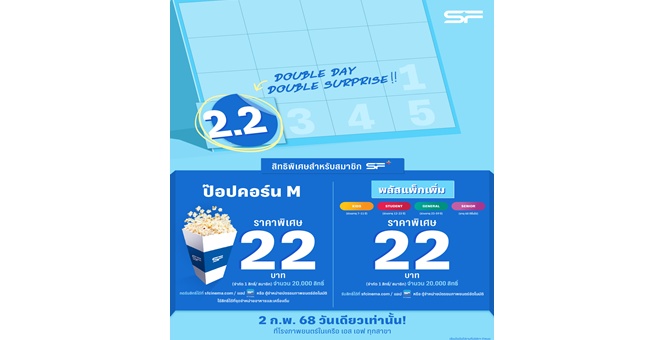 star_borderModal Upgrade Packageเอส เอฟ จัดแคมเปญ “2.2 DOUBLE SURPRISE” สมาชิก SF+ ซื้อป๊อปคอร์นราคา 22 บาท !!!30 ม.ค. 2568 11:25 น.