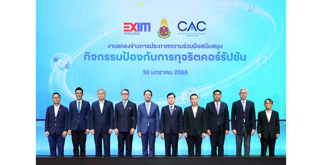 star_borderModal Upgrade PackageEXIM BANK จับมือสำนักงาน ป.ป.ช. และ CAC เปิดตัวนวัตกรรมทางการเงินด้านธรรมาภิบาลครั้งแรกของโลก เสริมสภาพคล่องและลดต้นทุนทางธุรกิจแก่ผู้ประกอบการไทยที่ได้มาตรฐานสากล30 ม.ค. 2568 11:53 น.