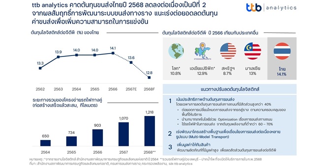 star_borderModal Upgrade Packagettb analytics คาดต้นทุนขนส่งไทยปี 2568 ลดลงต่อเนื่องเป็นปีที่ 216 ม.ค. 2568 16:16 น.