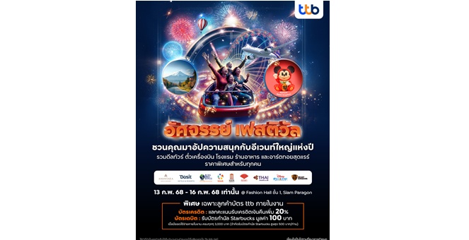 star_borderModal Upgrade Packageทีทีบี ชวนทุกคนร่วมงาน “อัศจรรย์ เฟสติวัล” อีเวนท์รวมดีลใหญ่แห่งปี แพ็กเกจทัวร์ ตั๋วเครื่องบิน โรงแรม ร้านอาหาร และอาร์ตทอยสุดแรร์ ราคาสุดพิเศษ16 ม.ค. 2568 10:52 น.