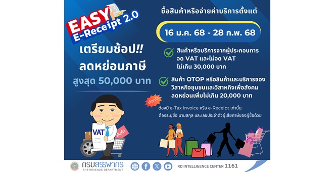 star_borderModal Upgrade Packageเริ่ม 16 มกราคม 2568 “Easy E-Receipt 2.0” ลดหย่อนภาษีสูงสุด 50,000 บาท กระตุ้นเศรษฐกิจในประเทศ16 ม.ค. 2568 11:24 น.