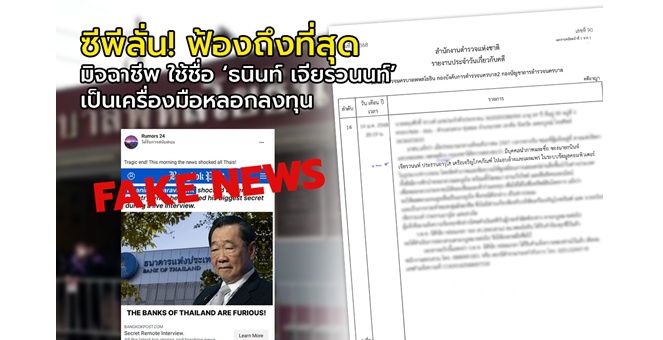 star_borderModal Upgrade Packageซีพีลั่น! ฟ้องถึงที่สุด กลุ่มมิจฉาชีพหลอกลงทุน ใช้ชื่อ ‘ธนินท์ เจียรวนนท์’ เป็นเครื่องมือ16 ม.ค. 2568 15:10 น.