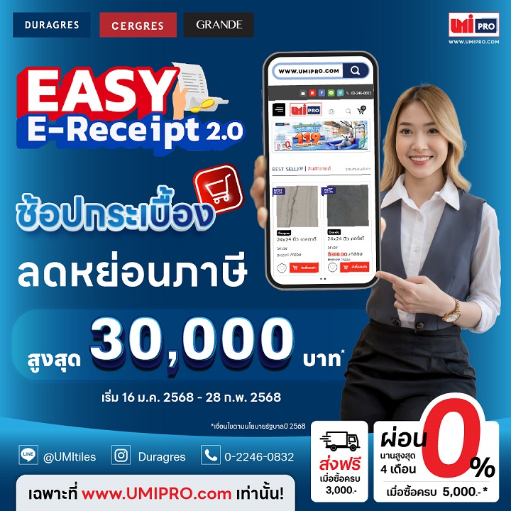 star_borderModal Upgrade PackageUMI จัดโปรเด็ด!! ช้อปกระเบื้องลดหย่อนภาษีสูงสุด 30,000 บาท15 ม.ค. 2568 14:32 น.
