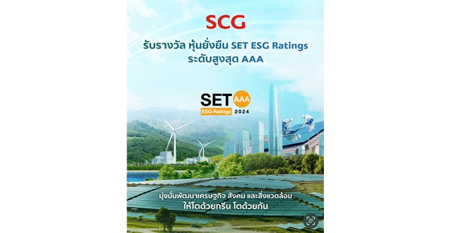 star_borderModal Upgrade PackageSCG ผู้นำด้านความยั่งยืน รับรางวัล “หุ้นยั่งยืน SET ESG Rating ระดับ AAA” ปี 2024 จากตลาดหลักทรัพย์ฯ10 ม.ค. 2568 13:36 น.