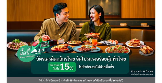 star_borderModal Upgrade Package“มื้อนี้ K เลย” กับบัตรเครดิตกสิกรไทย จัดโปรแรงอร่อยคุ้มทั่วไทย รับเครดิตเงินคืน 15%* ไม่จำกัดยอดใช้จ่ายขั้นต่ำ8 ม.ค. 2568 14:28 น.