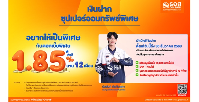 star_borderModal Upgrade Packageธอส. เอาใจคนรักการออม เปิดบัญชีเงินฝาก “ซุปเปอร์ออมทรัพย์พิเศษ” ตั้งแต่วันนี้ ถึงวันที่ 30 ธันวาคม 2568 รับอัตราดอกเบี้ยสูงถึง 1.85% ต่อปี นาน 12 เดือน8 ม.ค. 2568 15:31 น.
