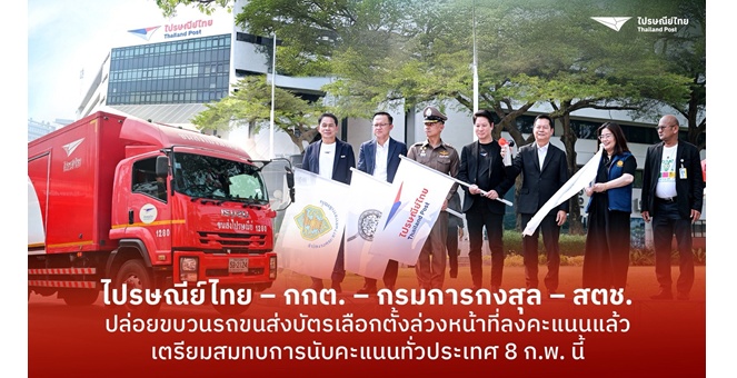 star_borderModal Upgrade Packageไปรษณีย์ไทย ร่วมกับ กกต.– กรมการกงสุล – สตช. ปล่อยขบวนรถขนส่งบัตรเลือกตั้งล่วงหน้าที่ลงคะแนนแล้ว กระจายสู่ 400 เขตทั่วประเทศ ก่อนวันนับคะแนน 8 กุมภาพันธ์นี้6 ก.พ. 2569 17:16 น.
