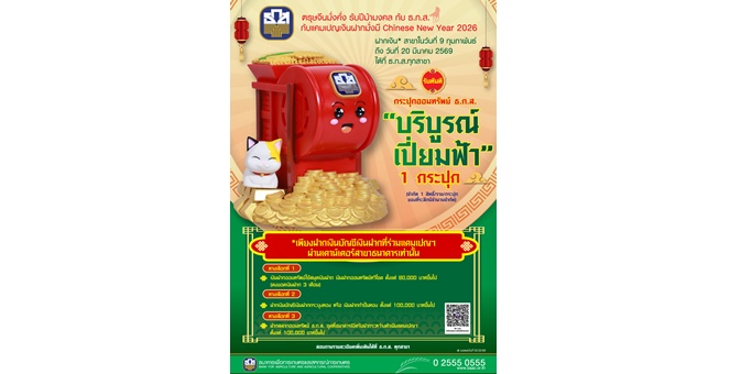 star_borderModal Upgrade Packageธ.ก.ส. จัดแคมเปญเงินฝากมั่งมี Chinese New Year 20266 ก.พ. 2569 11:00 น.